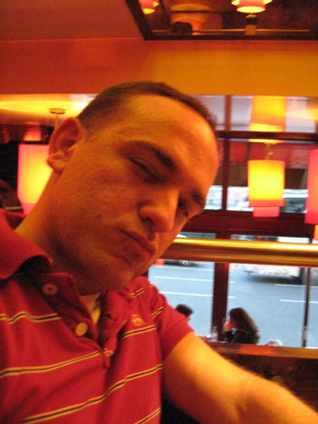 After they visited the Louvre, they came back to the hotel to get me (awww....they care). Shannon, Brian and Mike were all leaving from Paris this afternoon, so instead of trying to cram in more sights, we all thought it would be nice to actually relax. What better way to relax in Paris than letting a Sunday morning/afternoon roll on by while you're sitting at a sidewalk cafe? Even better? It was a beautiful day, the temperature was amazing, and we were at a cafe situated right on the Seine. Truly, it was awesome. We all got some delicious food and top it all off, we had chocolate mousse!!!!!! I LOVE Chocolate Mousse.